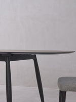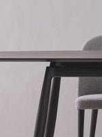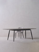 Crafted with a refined minimalist aesthetic, this wooden dining table features a slim 30mm tabletop in a sleek rectangular shape softened by rounded corners. The unique base design, with subtly curved round legs of varying diameters, adds a sculptural touch while ensuring stability. Perfectly balancing elegance and functionality, this table makes a striking centerpiece for any modern dining space.